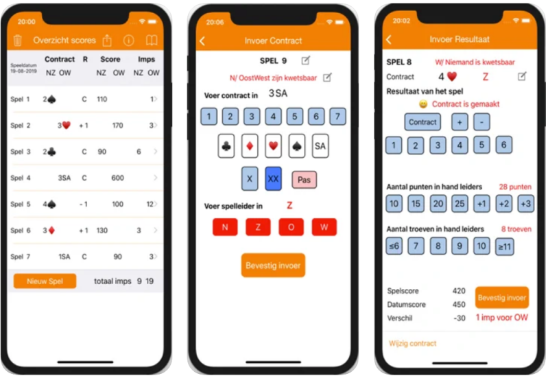 Hiervoor wordt de score app "De Gezellige Bridger" gebruikt.