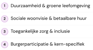 Meer sociale huurwoningen en betaalbare middenhuur. Eerlijke verdeling op de woningmarkt, ook voor kwetsbare groepen en statushouders.
