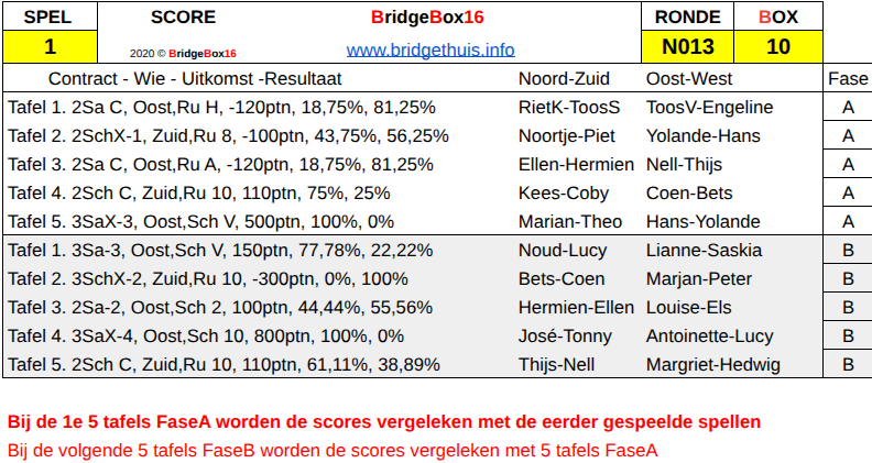 With BridgeBox16 you can easily organize a competition of 16 deals for 1 table (2 pairs).